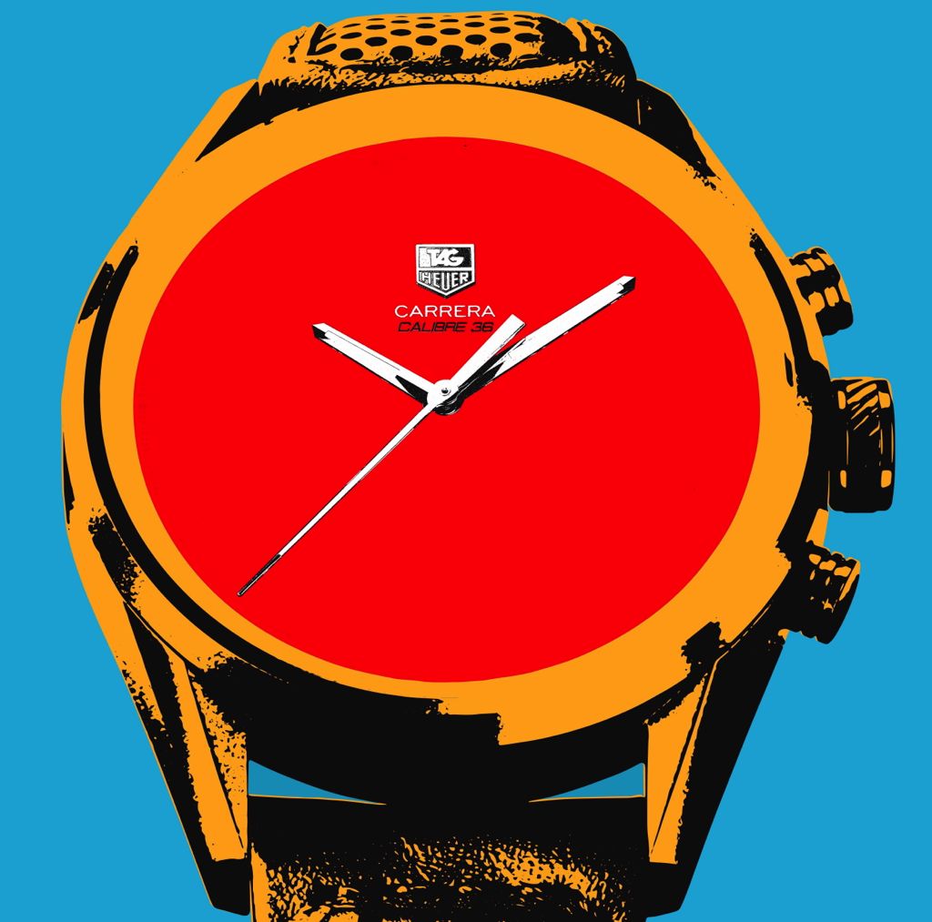 We start with the graphic showing four watches, done in the “Pop Art” style that TAG Heuer has been using a theme to celebrate the 50th Anniversary of the Carrera.