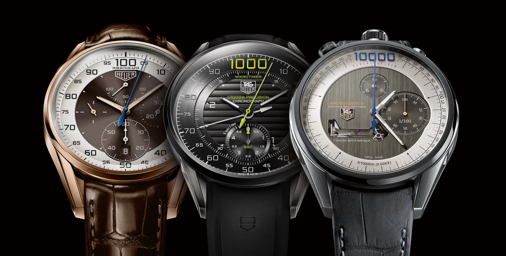 Reviewing some recently released TAG Heuer chronographs, we see that there are several that have this same style of short hands. All three of the “Mikro” series shown below have short time-of-day hands, with full length second hands.