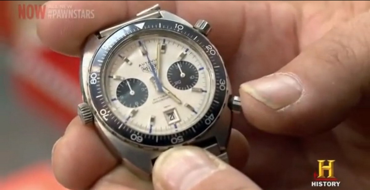 This version of the Heuer Autavia is one of the chronographs most popular among today’s collectors. This episode of Pawn Stars was quickly highlighted on our discussion forum and also featured in a posting on Hodinkee.